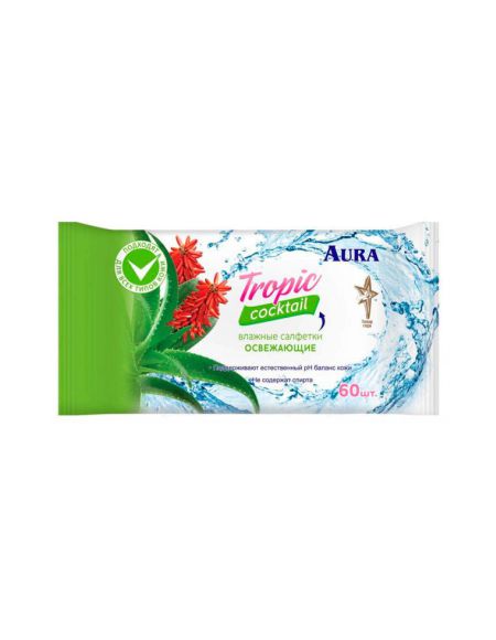 Влажные салфетки AURA TROPIC COCKTAIL освежающие в асс-те, 60 шт